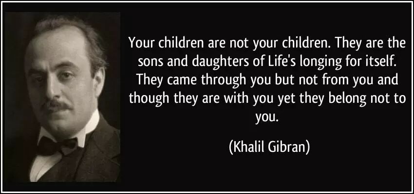 你的儿女其实不是你的儿女。他们是生命对于自身的渴望而诞生的孩子。他们借助你来到这个世界,却非因你而来。他们和你在一起,却并不属于你。——纪伯伦