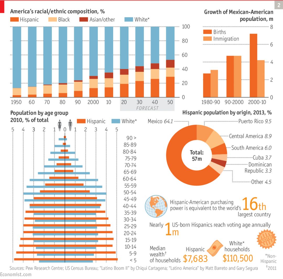 美国人口拉美化是我好几年前就警告大家的一件事情。从人口统计上看来,在未来的 30 年,拉美裔人口将占据美国劳动人口的一半以上。这件事将极大地影响美国的经济和政治模式,乃至全世界的格局。拉美裔人口在美国占据主流地位,意味着西班牙语成为日常语言,英语成为养老院专用语言,盎格鲁 - 撒克逊的传统将会被边缘化,美国国父的雕像甚至会被玻利瓦尔取而代之。