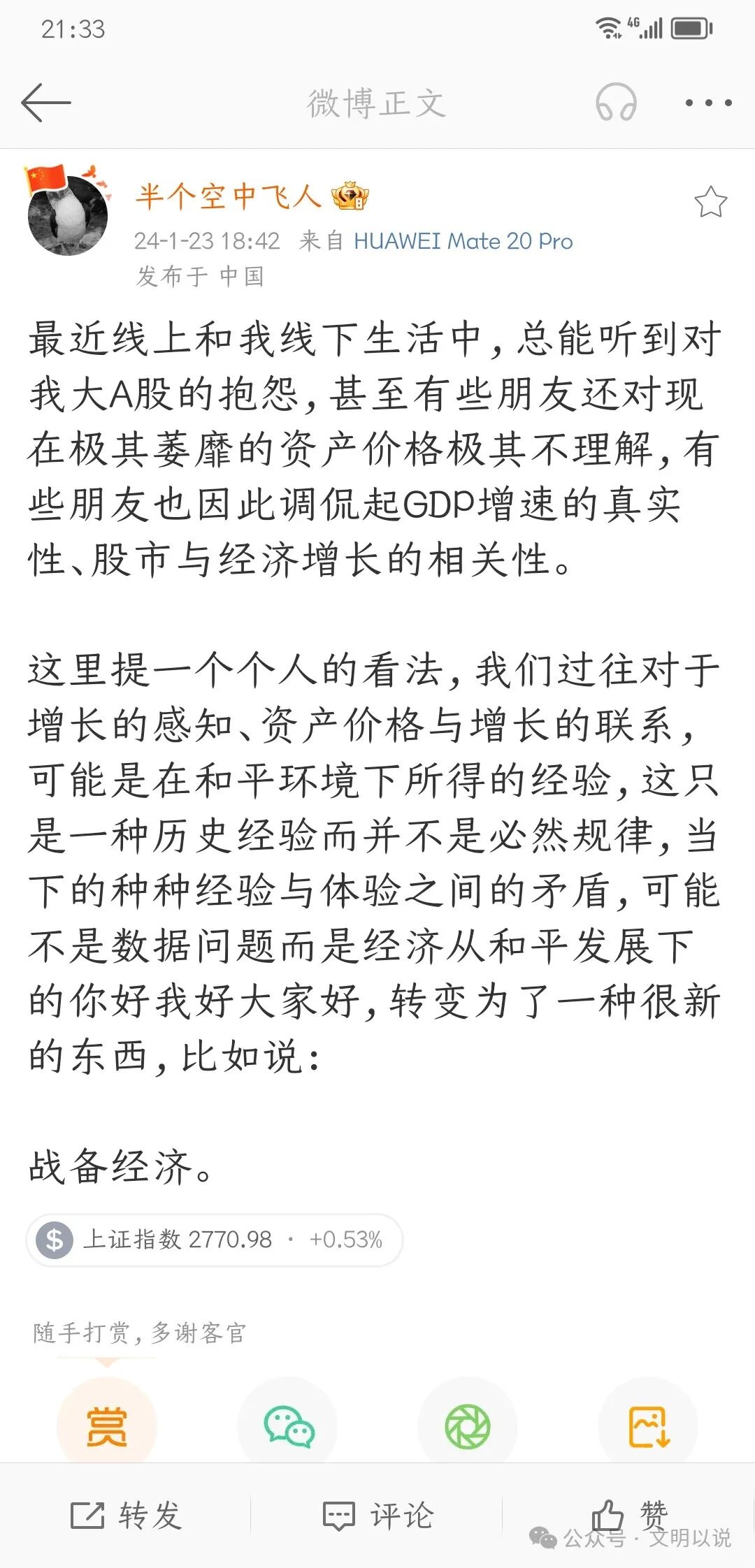 这个斗争还将持续一段时间,还会继续抓人。在这个斗争过程中,中国的金融至少在面子上是很难好起来的。这也是世界体系的结构决定的。美国产业霸权已经崩了,意识形态霸权崩得差不多了,军事霸权的底裤在乌克兰已经露出来了,帝国只剩下金融霸权了,这是它最后的霸权。美国统治阶级,由华尔街统合起来的全世界资产阶级,包括中国的依附性资产阶级,都很清楚这一点,必定倾尽全力维护这个霸权。